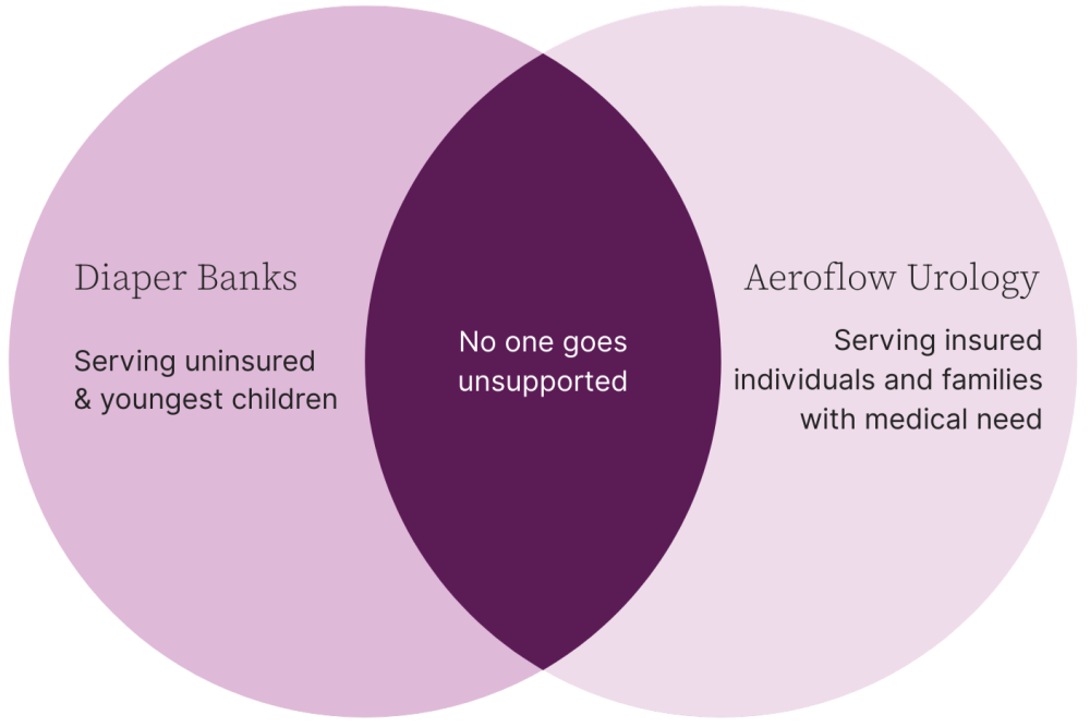 Diaper banks are a lifeline for families. Aeroflow Urology builds on that foundation by supporting families with insurance coverage — at no cost to them or to your programs.